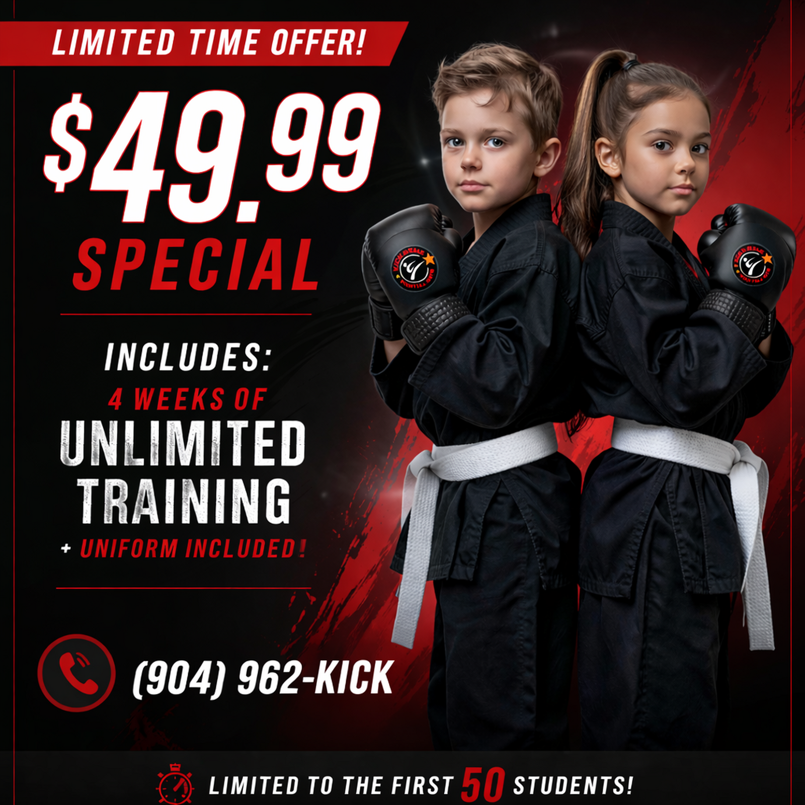 The Kick Star Program delivers dynamic martial arts training designed for beginners and families seeking a powerful, high-impact program. Students build a strong foundation in technique, confidence, discipline, and courage, then progress into advanced training that elevates performance and sharpens leadership. More than martial arts, Kick Star equips students with the life skills to stand out at school, excel at work, and lead with confidence in their community.